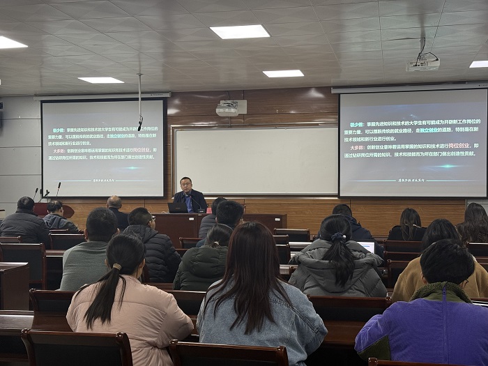 学院院长徐洪波进行了总结发言。他对张徐教授的精彩讲座表示了感谢,并指出此次讲座不仅加深了教师们对大赛的认识和理解,也为学院提升创新创业教育水平、增强学生创新能力提供了有力的支持。他鼓励全体教师积极组织学生参与大赛,以赛促学,以赛促创。