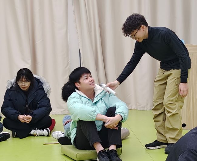 活动开始前,赖国升详细介绍了本次团辅的目标及规则,强调团队契约,为活动的有序开展营造安全、信任的氛围。破冰之旅率先打破初见的拘束。“情绪猜猜猜”环节中,同学们各展才能,通过肢体语言演绎喜怒哀惧等情绪,并分享身体反应——“紧张时手心冒汗”“开心时心跳加速”。这一活动强化了情绪识别能力,深化了情绪与身体关联的认知。紧接着,精心筹备的“情绪温度计”环节,同学们绘制个性化情绪图谱,标注近期事件中的情绪强度,并分享考试压力、人际矛盾等真实经历。赖国升适时引导,分析情绪触发点,强调“情绪无对错,读懂需求是关键”,帮助大家正视情绪根源。随后,在知识普及环节,他介绍了“情绪急救箱”,聚焦实践技能,同学们通过模拟演练,掌握“危机干预+日常调节”的双重策略。活动最后,与同学们共同回顾全程的精彩与感动,鼓励大家将活动中掌握的技能应用到日常生活中。