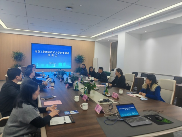 座谈会上,周永祥对调研组一行表示了欢迎,详细介绍了句容市人才政策、“两群三链”的特色产业、与高校合作的形式等情况。高宏彦介绍了学校的发展历程、师生队伍情况、产教融合、社会服务等方面的情况。随后,双方就企业的需求、学生的就业、产学研孵化等方面进行了深入交流。