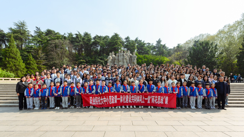 为深入推进大中小学思政课一体化共同体建设,发挥思政课的价值引领作用,4月2日,金年会联合江苏农林职业技术学院、南京中华中等专业学校、南京财经高等职业技术学校、南京高等职业技术学校、江苏省戏剧学校、南京市佳营小学(南京市五老村小学分校)等17所大中小学校,在雨花台烈士陵园举办职业院校大中小学思政课一体化建设共同体同上一堂“雨花思政”课活动。金年会马克思主义学院党总支书记王亚峰、院长王晓峰、副院长徐兴华以及共同体建设单位的有关负责人、师生代表200余人参加活动。