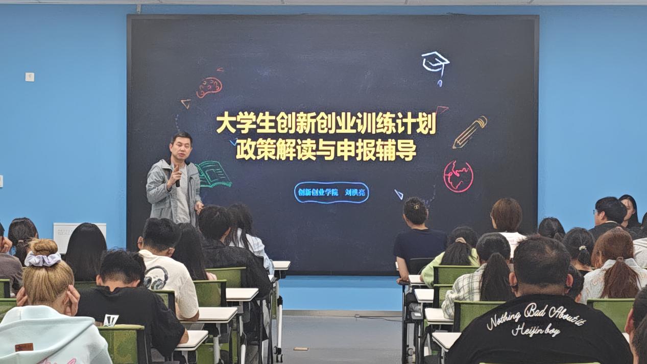 活动开场,创新创业学院教师刘洪亮带来 “大学生创新创业训练计划政策解读与申报辅导” 主题分享。凭借丰富的指导经验,他深入解读大学生创新创业训练计划相关政策,详细阐述大学生在国家创新驱动发展战略中的重要作用。他着重介绍项目类型选择策略,涵盖科技发明类、人文社科类、公益实践类创新实践项目,以及需结合专业背景面向市场的创业孵化项目;同时强调团队组建的关键意义,鼓励同学们打破院系界限,组建跨学科团队,融合多元知识结构,提升项目创新性与实用性。