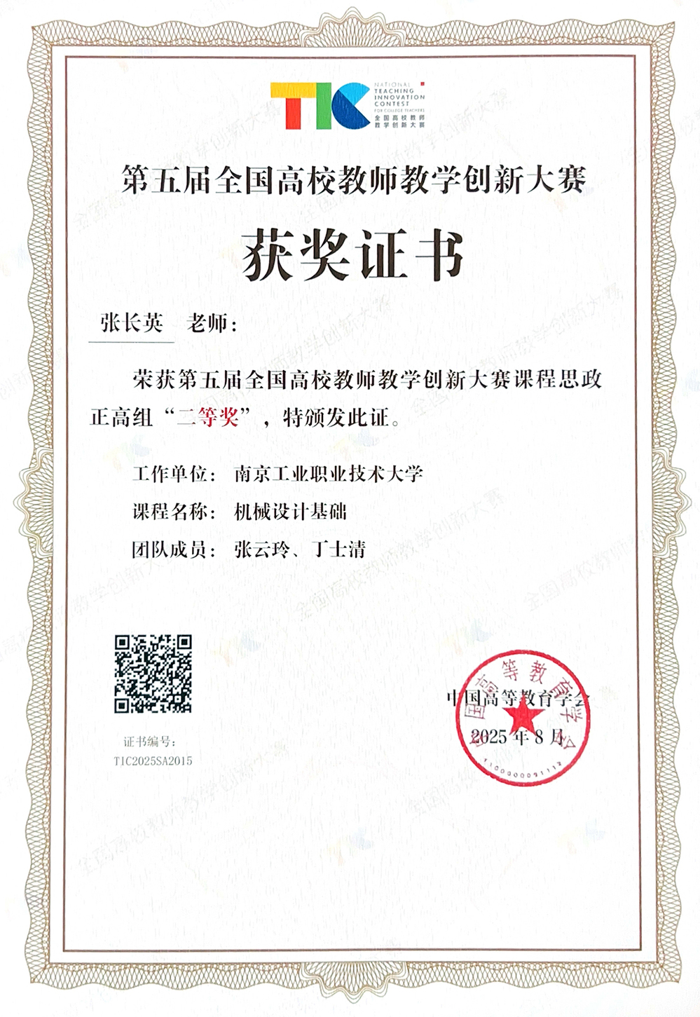 8月16日至19日,由教育部高等教育司指导、中国高等教育学会主办的第五届全国高校教师教学创新大赛全国赛现场评审在北京理工大学成功举办。 金年会机械工程学院教师张长英凭借在课程思政教学方面的系统创新与扎实成效,荣获课程思政正高组全国二等奖。
