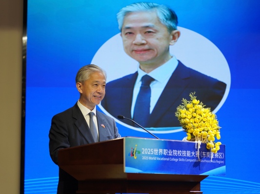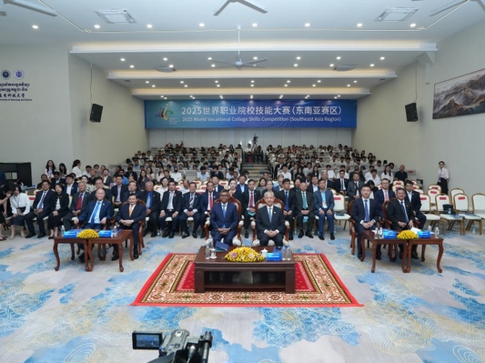 世界职业院校技能大赛是2024年由中国职业院校技能大赛升级而来,是中国教育部牵头举办的一项公益性、国际性职业院校综合技能竞赛,是中国职业教育一项重大制度设计和创新,是举办历史最久、联合主办部委最全、涉及行业领域最广的世界性综合技能赛事。2025年世界职业院校技能大赛首次增设东南亚赛区,充分结合东南亚产业发展需求与职业教育特色,设置新一代信息技术、商贸、智能装备应用三大赛道,吸引了东南亚60支参赛队伍、200余名选手报名参赛。经过激烈角逐,柬华应用科技大学等6个项目获金奖、印度尼西亚万隆制造技术学院等9个项目获银奖、菲律宾东方大学等15个项目获铜奖。韩春那洛副首相和汪文斌大使等嘉宾共同为获奖选手颁奖。印尼驻华大使馆教育与文化参赞李健对赛事做点评。