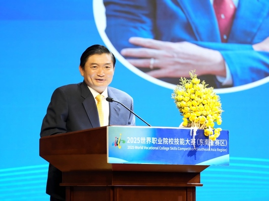 韩春那洛代表柬埔寨政府及教育、青年与体育部,对本次大赛在柬埔寨的成功举办表示衷心感谢。他强调,本次大赛是全球高度关注的重要赛事,不仅是技能与能力的竞技场,更是思想交流、文化融合与人际联结的桥梁。本次东南亚赛区比赛的举办,不仅是柬埔寨的荣誉,更为青年提供了在国际舞台上展示能力、信心、勇气与才华的宝贵机会。职业教育改革是柬埔寨教育领域的优先事项,而中国是这一战略的重要合作伙伴。柬华应用科技大学与jinnian金年会的合作,培养了大批多技能人才,成为中柬教育合作的典范。这些务实合作为柬埔寨青年开启了通往未来的大门,也为区域职业教育发展注入了新动能。他呼吁所有东盟成员国继续与中国深化合作,推动教育标准互认、课程对接与教师交流,丰富区域教育资源,实现共享共赢。