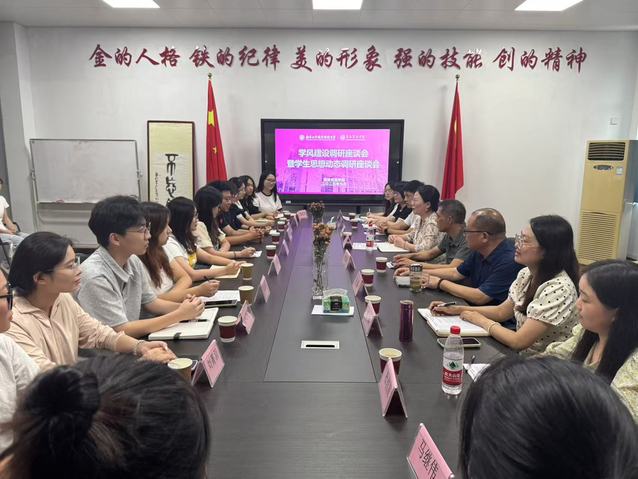 9月17日下午,商务贸易学院在求真楼413会议室组织召开新学期学风建设调研座谈会暨学生思想动态调研座谈会。学院党委书记邢益军,副院长朱玉赢,学院党委副书记、副院长王静,全体辅导员以及来自不同年级、专业的15名学生代表参加了会议。会议由学工办主任刘畅主持。