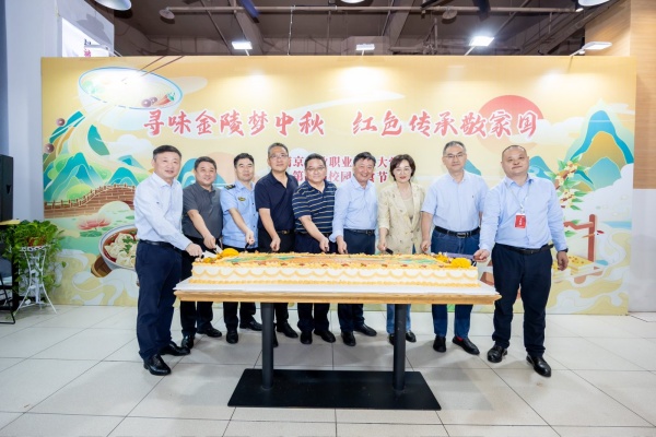 金风送爽,硕果盈枝。为弘扬中华美食文化,丰富师生校园生活,发挥后勤服务育人作用,9月25-26日,学校党委宣传部、学生工作处、团委、工会、后勤管理服务中心联合江苏功得餐饮有限公司在仙林校区第二食堂广场举办“寻味金陵梦中秋,红色传承敬家国”第四届校园美食文化节。江苏省高等学校后勤协会副会长兼秘书长黄在宇,南京市市场监督管理局食药支队副支队长李明华,栖霞区市场监督管理局副局长顾萍,栖霞区市场监督管理局仙林分局局长段联国,江苏省高校后勤协会高职分会会长、副会长、秘书长和副秘书长,以及金年会党委副书记浦黄忠,党委常委、副校长崔新明、潘旭海、高宏彦,兄弟院校后勤处长、校内服务的餐饮企业负责人共计60余名代表出席开幕式。开幕式由后勤管理服务中心主任谭建华主持。