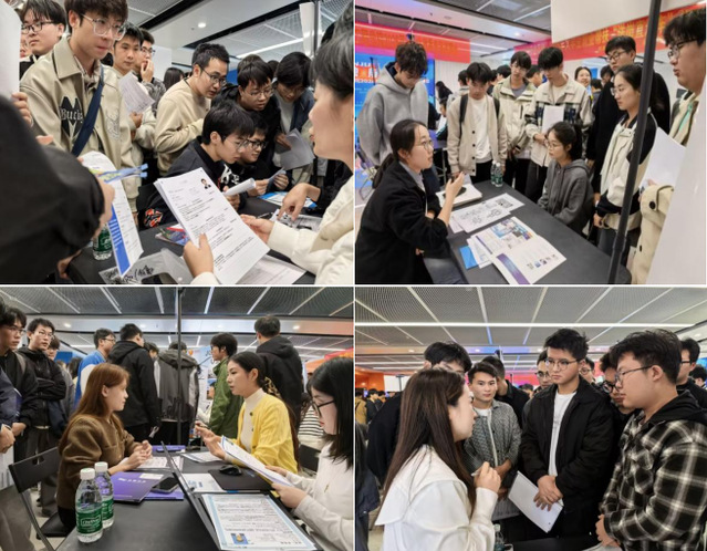 本次招聘会汇聚了中交三航局第三工程有限公司、蓝箭航天技术有限公司、南京长安汽车有限公司、南京誉葆科技股份有限公司等30余家优质企业,涵盖机械设计、航空航天制造、交通设备研发等多个专业方向,为毕业生提供了丰富多元的就业选择。现场气氛热烈,毕业生积极投递简历,主动与用人单位沟通交流,详细了解岗位职责、薪酬待遇及职业发展路径。各企业代表也耐心解答同学们的疑问,介绍企业概况与岗位技能要求,并与部分毕业生达成初步聘用意向。