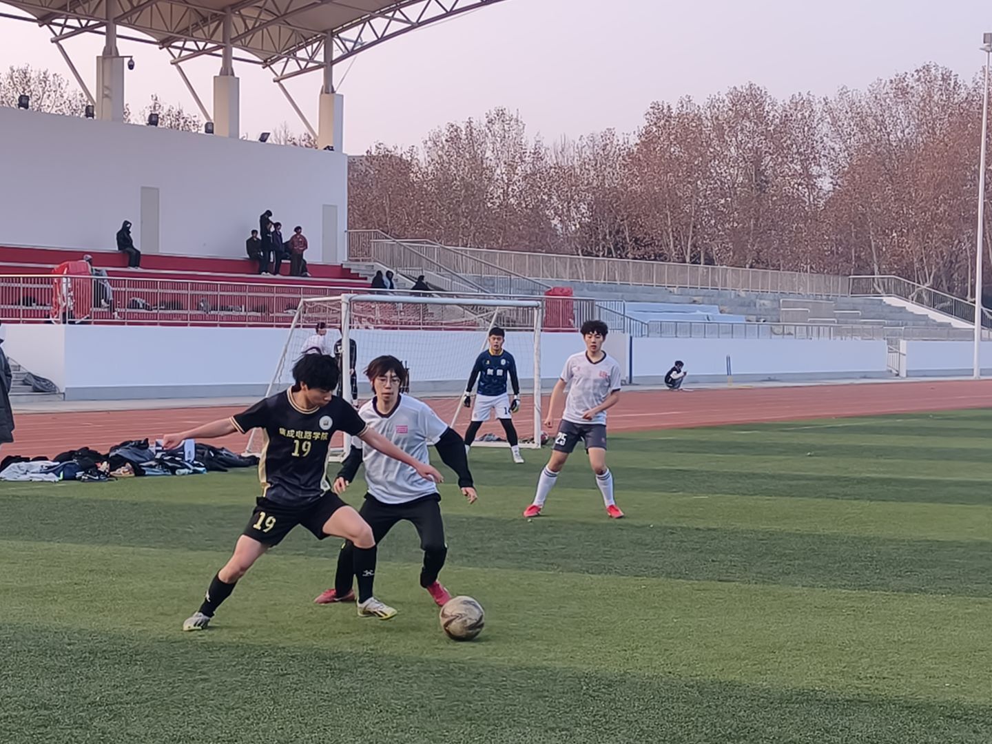 12月17日,金年会2025年“新生杯”足球比赛在学校体育场顺利收官。校团委副书记蔡骁,国际教育学院直属党支部副书记、副院长张莉,科技园管理有限公司副总经理张威,体育部副部长金超及教师足球队队长张巍到场观战并为球员们颁奖。其中,张威、金超和张巍参与比赛并与同学们同场竞技。