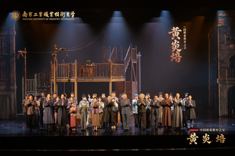 该剧从创作之初便坚持高起点谋划、高标准推进。学校党委高度重视支持原创话剧制作,剧本起草初期,校领导带队到兄弟高校调研,主创团队多次赴上海黄炎培故居、相关展馆等地深入调研,排演过程多次组织校内外专家召开剧本和舞美研讨会,不断深化主题表达、完善剧情结构、贴近人物原型。演职人员团队近50人,大家充分利用课余和假期时间,全身心投入排练,反复揣摩角色、细致打磨表演,从台词到肢体,从情绪到节奏,力求每一处细节都能真实动人、传递力量。历时数月的扎实创排,不仅锤炼出一支有情怀、有水平的师生演职团队,更让黄炎培先生的形象在舞台上鲜活立体,唤起观众对职业教育初心与使命的深切认同。