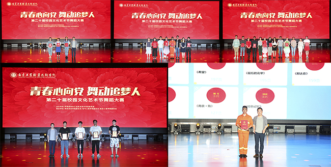 经过激烈的比拼,商务贸易学院《彼岸》、《匠心》电气工程学院《英雄赞歌》最终获得特等奖。机械工程学院《红旗颂》、经济管理学院《最后的名单》、艺术设计学院《灼灼芳华》、航空工程学院《逆行者》获得一等奖。国际教育学院《那达慕》、交通工程学院《红色记忆》、计算机与软件学院《田间斗笠》、艺术设计学院《我和我的祖国》、经济管理学院《希望》、电气工程学院《我的母亲》、计算机与软件学院《南京·殇》获得二等奖。航空工程学院《逆行者》获得最佳人气奖。电气工程学院团总支、经济管理学院团总支、商务贸易学院团总支、艺术设计学院团总支被评为第二十届校园文化艺术节优秀组织奖。