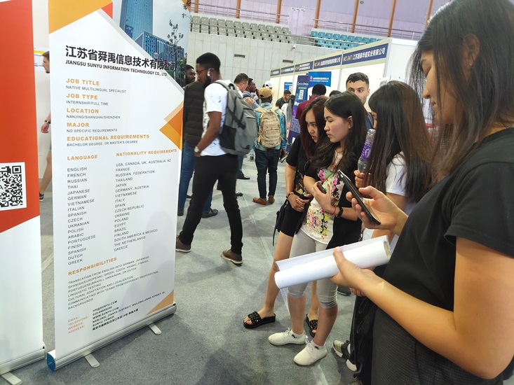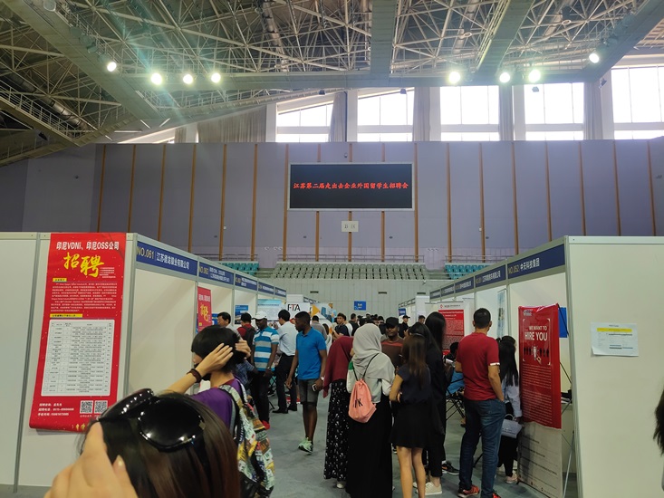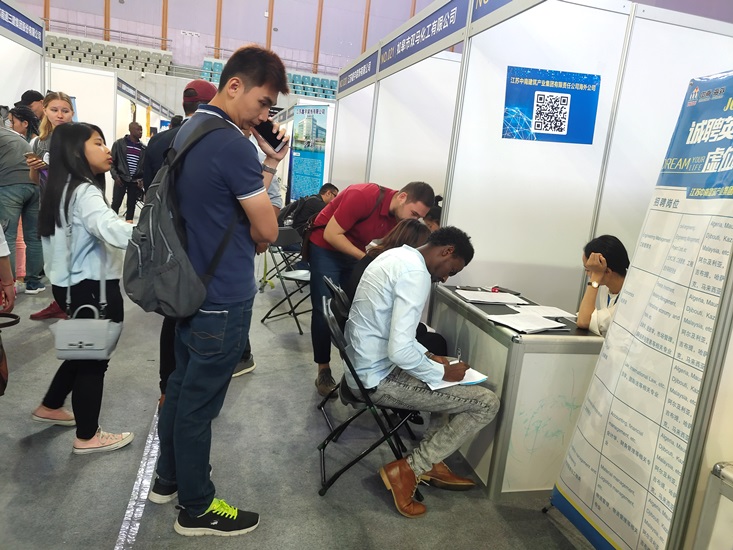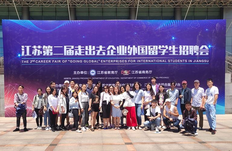5月22日,南京工业职业技术学院国际教育学院留学生在相关负责人和老师的带领下,前往南京信息工程大学参加江苏第二届走出去企业外国留学生招聘会。学生们在企业招聘展台前,咨询工作岗位,以专业的表现向企业展现自信和风采。参加本次招聘会的学生即将于这学期毕业,他们渴望毕业后留在中国工作,本次招聘会为他们提供了很好的机会。金年会留学生普遍表示参加此次活动很有意义,不仅收集了很多招聘资料和岗位信息,同时还了解了中国企业的招聘流程。来自蒙古的铁木真表示回去一定要学好汉语,以后还要学习专业知识,这样才可以在招聘会中增强竞争力。