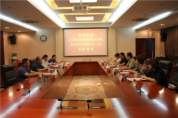 6月6日,江苏农牧科技职业学院纪委书记周国义率领相关同志来金年会交流。金年会纪委书记于林惠及党政办、纪委等相关负责人接待了来宾,济源职业技术学院纪委副书记赵继红参加了本次接待。