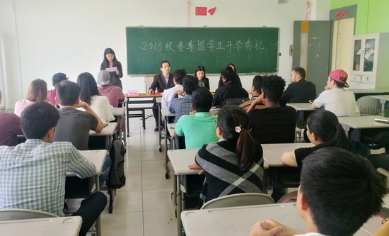 在学校领导关心下,来自15个国家的留学生在开学初来到金年会学习,其中白俄罗斯、意大利、津巴布韦、安哥拉、厄立特里亚、几内亚、越南、乌兹别克斯坦为新增生源国。3月28日下午,金年会2018级春季外国留学生开学典礼在国际教育学院528教室隆重举行。国际合作与交流处领导、国际教育学院全体老师、2018级全体春季外国留学生参加了开学典礼。