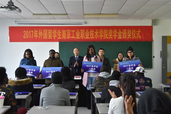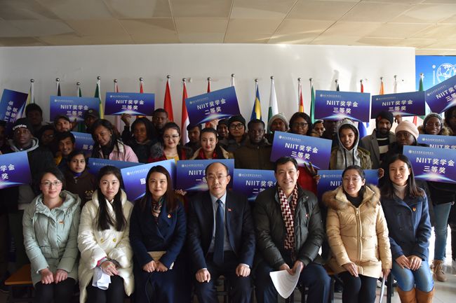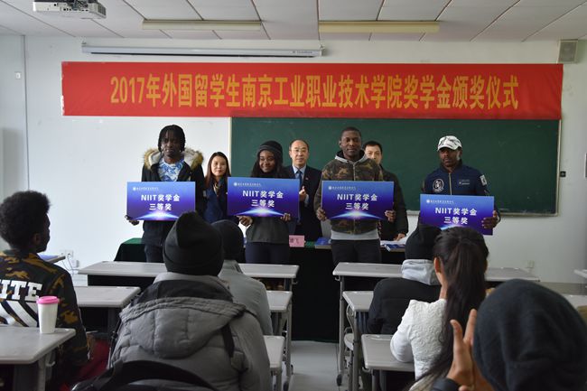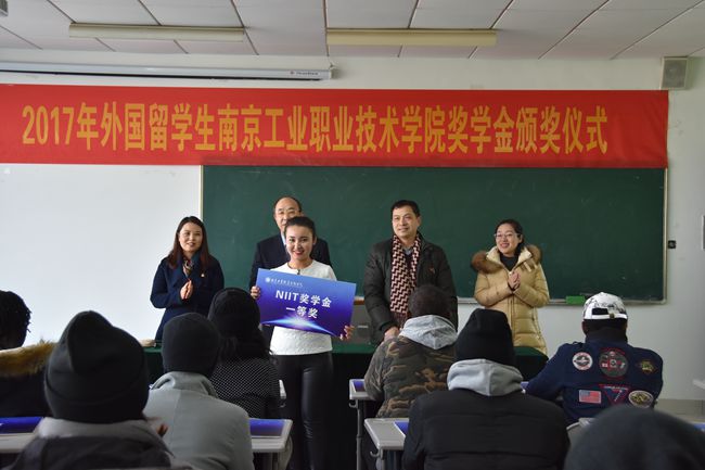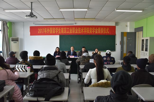 12月21日,金年会2017年来华留学生“南工院奖学金”颁奖仪式在教一528教室隆重举行。学校霍雄飞副校长受邀出席了典礼。国际教育学院全体教师、留学生班主任及40名外国留学生代表参加了颁奖仪式。颁奖仪式由国际教育学院党总支书记、院长赵秋主持。