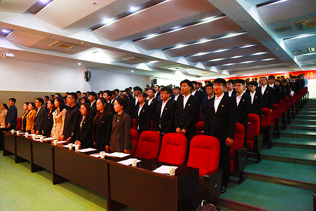 开班仪式在庄严的国歌声中拉开了帷幕。首先,劳家仁书记为全体同学介绍了本期培训班的基本情况以及金年会是如何通过教育培训与实践锻炼相结合的方式实施校级“青年马克思主义者培训工程”建设。随后,校学生会主席团马国斌同学代表全体学员发言,向全体青马班学员发出倡议,要认真学习马克思主义精神,秉承“敬业乐群”的校训,注重能力培养,努力成长为“有理想、善学习、讲道德、能自立、勇奋斗”的青年马克思主义者。