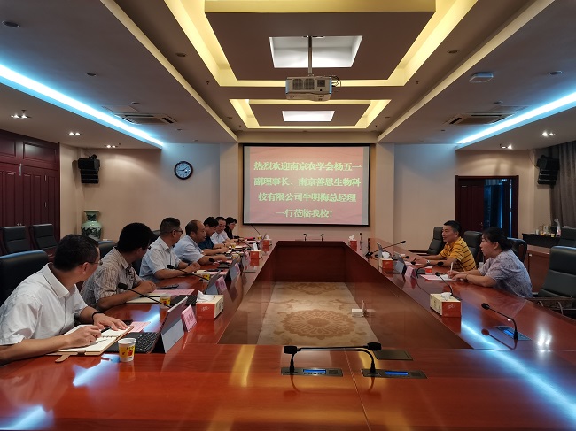9月10日上午,南京农学会副理事长杨五一、南京善思生物科技有限公司总经理牛明梅一行来金年会交流、洽谈合作。金年会纪委书记于林惠、副校长崔新明,科技处、发展合作处、电气工程学院、计算机与软件学院、商务贸易学院负责人参加了此次会议。