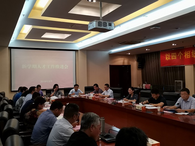 谢永华校长分析了2019年上半年人才工作取得的成绩和存在的问题,并指出了下半年努力的方向。针对建设“一流的师资队伍”,充分发挥教师队伍活力,谢校长提出了三点要求:一是要进一步加大高层次人才引进的力度;二是要进一步加大教师的培养培训力度,要引得进人、留得住人、用得好人;三是要进一步激发教师队伍的活力。