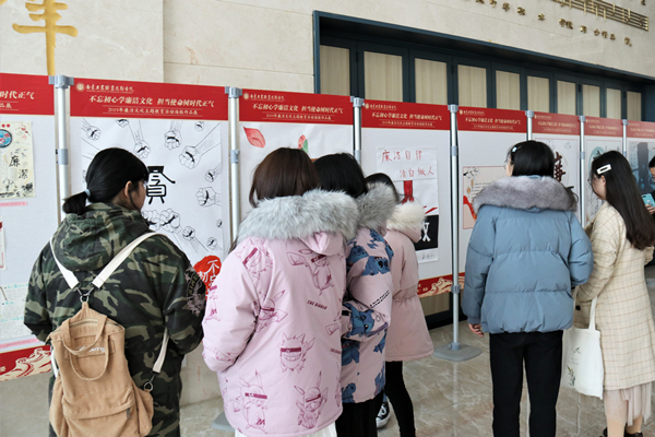 为贯彻落实新形势下全面从严治党的有关要求,在全校营造浓厚的崇德尚廉文化氛围,维护风清气正的校园政治生态,根据学校党委对党风廉政建设工作的统一部署,结合“不忘初心、牢记使命”主题教育,校纪委办公室、学生工作部(处)、团委开展了“不忘初心学廉洁文化,担当使命树时代正气”2019年廉洁文化系列主题教育活动。校党委委员、纪委书记于林惠,党委委员、副校长霍雄飞与师生共同观看作品展。