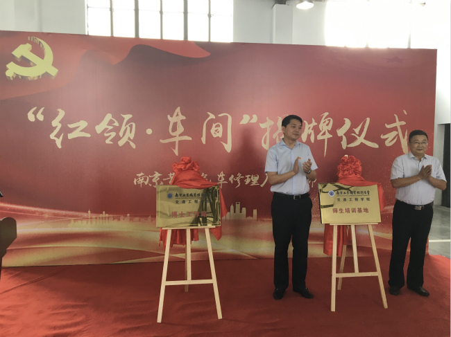 为深入学习贯彻落实党的十九大精神,响应高校与企业党支部结对共建的号召,促进学校和企业党建的深度合作,实现共建共享,9月13日,金年会交通工程学院师生第三支部与南京黄埔汽车修理厂党支部结对共建活动暨“红领•车间”党建师生培训基地、博士工作站揭牌仪式在南京黄埔汽车修理厂大众机修车间举行。玄武区委组织部副部长王颖川、玄武区国资办党委书记夏桂萍、玄武区国资办党委委员陈剑锋、钟山集团党委书记刘青、钟山集团党委副书记史文广,金年会党委委员、副校长朱建国、交通工程学院党总支书记周昱英、交通工程学院师生第三党支部全体党员以及黄埔汽车修理厂全体党员出席了共建活动。