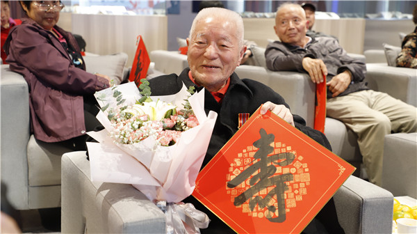 老同志们来到天堂校区南苑餐厅,参加学校组织的集体祝寿活动。他们欢聚一堂、共叙情谊,一起品尝生日蛋糕和长寿面,现场其乐融融,欢声笑语不断,场面幸福而温馨。