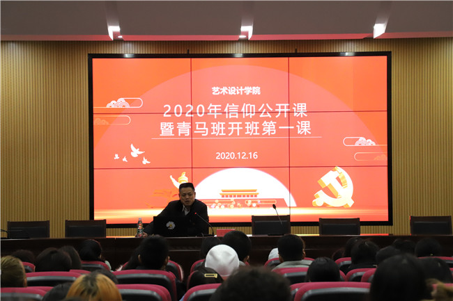 12月16日晚,艺术设计学院2020年信仰公开课暨青马班开班第一课在天堂校区综合楼606报告厅正式开讲。公开课邀请马克思主义学院院长王亚峰教授带领同学们从全球抗疫国际比较的视角读懂中国。学院团总支书记陆永康及150余名艺术设计学院青马班学员共同聆听了本次公开课。