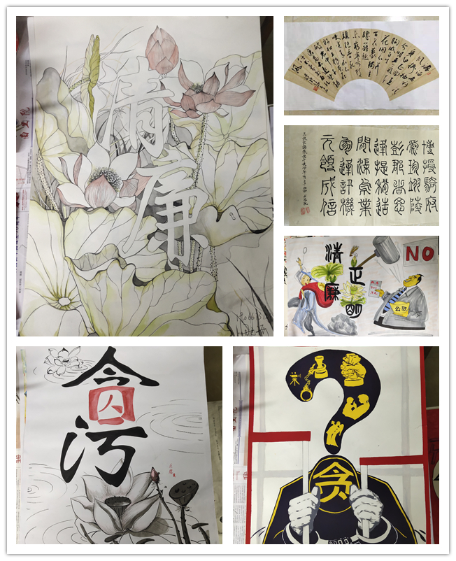此次参赛作品聚焦全面从严治党,聚焦优秀廉政文化,聚焦弘扬清风正气,传扬崇尚廉洁、鄙弃贪腐的价值理念,彰显了全面从严治党的新内涵、新要求,展现了艺术设计学院浓厚的廉政文化氛围和艺术学子优秀的书法美术创作实力。作品形式多样、风格各异、格调高雅、积极健康。经过专业老师评审,最终评选出绘画类作品一等奖6幅、二等奖9幅、三等奖10幅;书法类作品一等奖9幅、二等奖5幅、三等奖5幅。