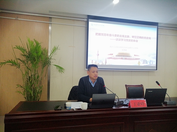 为做好党史学习教育,进一步增强党员干部对我党百年奋斗历程有更深层次的了解,3月5日,栖霞区西岗街道办事处组织开展“学党史、悟思想、办实事、开新局”党史学习宣讲活动,金年会马克思主义学院院长王亚峰应邀做了以“把握党百年奋斗史的主线主脉,树立正确的党史观”为主题的党史学习报告,街道机关党总支第一党支部35名党员参加了此次学习。