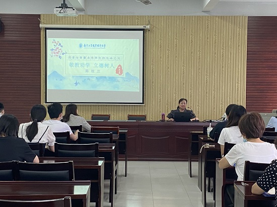 陈桂兰以“敬教劝学,立德树人”为题,给大家分享了她的工作认知与经验。她首先强调了“立德树人”工作的极端重要性,指出“立德”就是要不断提高学生思想水平、政治觉悟、道德品质和文化素养,“树人”就是要把学生培养成为新时代中国特色社会主义事业合格的建设者和接班人。教育工作者要切实在思想上解惑、精神上解忧、文化上解渴、实践中增力下功夫,助力学生成长成才与成功。她在剖析辅导员和班主任工作职责的基础上,希望大家增进职业情怀,坚定职业理想,努力成为于漪、张桂梅式的、具有“四有六要”优良品质的好老师。